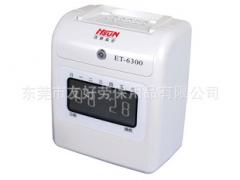 浩顺晶密ET-6300T参数细节卡片式考勤钟产品介绍自动吸入卡上下班自动移位电脑万年历自动对时定时上下班音乐报时六栏位打印双色打印外接响铃九针针式打印操作简单,方便,停电打卡主要参数电压:220V-240V电流:0.15A/H包装尺寸:265*175*285机身重量:2.1KG 2.4KG工作温度:-10℃--40℃工作湿度:10%-80%RH卡片尺寸:85*188*0.35mm以上图文仅供参考,产品以实物为准功能详解自动吸卡:员工打卡考勤时,只要把卡片放到入口处,卡钟会自己吸卡,打印完毕后自动吐出。音乐报时:当您开始上班或将要下班时,就会有悦耳动听的音乐响起,来提醒你上班或下班了。打印微调:可以调节在卡纸的上下打印位置,既能使打印的更加漂亮,又可以使用不同的卡纸。万年日历:内置芯片程序是根据日历算法编写的,可以从2000年1月1日任意设置到2999年年终(需要有管理钥匙才可调整时间)双色打印:机器的管理者可以设定三个上下班时间段,例如早上08:00-11:30为一段工作时间,下午12:30-16:30为一段工作时间,晚上18:00-21:00为一段工作时间,在迟到早退的时间范围内,员工考勤打卡的时候,打印在考勤卡上面的字体为红色,不同于正常考勤的黑色,方便统计人员统计考勤。使用说明1、将本产品放在适当的位置,接通电源即可使用。2、机器接通电源后需进行开机自检及完成复位动作,请稍待一至二分钟。3、不要插入考勤卡以外的东西。4、机器内置微型计算机芯片,属精密机电产品,请轻拿轻放,及远离电磁干扰场所,否则会不正常工作。5、机器外部清洁用面织物沾少许肥皂水擦拭,因本机外壳有塑胶制作,不得使用汽油、苯类、稀释剂等溶剂擦拭。6、 严禁水滴进入机器内部。全自动微电脑控制免调整,针式双色打印,清晰宁静,上下班自动移位,自动吸退卡,液晶显示,自备万年历,定点报时,也可外接电铃,双色打印,配备电池带停电打卡