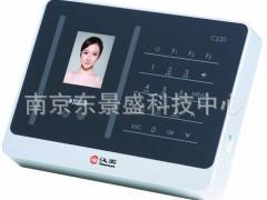 - 汉王C220考勤机采用中低端人脸考勤,200用户,一对多识别;10万考勤记录保存;精巧设计,低成本基础上,实现最新生物识别技术的应用,拉开人脸识别应用的普及风暴。C220采用完全非接触,避免几百人长年累月一直用手去按一个指纹采集头,既不卫生,也不容易磨损指纹采集头。C220可以根据客户的网络实际情况和使用习惯,U盘下载、网络通信,任选其中一种,均可以实现设备的用户、记录的上传下载产品定位:1)产品定位低端人脸识别考勤机适用中小企业、单位考勤使用2)市场定位人脸识别身份认证产品低端产品应用产品功能:1)彩屏显示2.4英寸TFT彩屏显示2)语音报姓名识别成功后,自动播报中文姓名。3)触摸键盘采用最新触摸技术,时尚。4)人脸识别算法采用汉王Dual Sensor TM V2.6人脸识别算法,识别更精准。5)U盘下载通过U盘上传用户姓名列表,下载识别记录。6)TCP/IP网络通信通过TCP/IP网络设置设备状态,以及上传下载信息。技术参数:1)用户容量:200人脸用户2)记录容量:10万条3)识别算法:DualSensor V2.64)硬件平台:高速数字媒体处理器5)内存:32MB SDRAM6)闪存:16MB7)摄像头:专用双摄像头8)验证方式:人脸识别9)验证速度:<1秒10)识别率:<0.01%11)误判率:<0.0001%12)按键:5*4触摸按键13)显示:2.4英寸TFT彩屏,6万5千色高彩,320*240分辨率14)语音:语音合成,报中文姓名;15)通信方式:标准TCP/IP、U盘16)电源:12V DC,工作电流500mA17)使用距离:30-80 cm18)使用温度:0℃-40℃19)使用湿度:20% - 80%20)安装方式:壁挂式/桌面式,建议高度1150mm