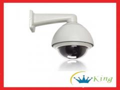 室外高速球智能球机监控摄像机27倍变焦HK-GV7270产品介绍:全新高强度铝合金金属结构,有效防止变形及保持 结构稳定 。最新设计的黑色遮蔽内罩,使用更具隐蔽性 。优质电机及皮带的选用,使用更可靠。静电除尘,恒温循环设计,采用 IP66 防护标准 。智能变速, 0.5°/S-280°/S 平稳水平变速, 0.5°/S-180°/S 垂直变速, 180° 自动翻转, 360° 连续旋转 。128 个预置点联动及八组花样巡航,每组可巡视 16 个预置点 。可将预制点间扫描速度设置 1-64 等级,预置点停留时间设置为 1-60 秒。可匹配 彩色 18 、 22 、 23 、 27 倍光学摄像机模组。比例变倍,云台按变倍深度逐渐降低云台速度,确保图像清晰平衡,达到最佳效果 。遮敝区功能,随意设置遮敝区,与镜头变倍成正比例放大或缩小。内置多种协议可兼容 标准系统 。断电信息保护和内置浪涌、雷击保护装置 。辅助选配功能:防爆型设备 。技术参数图像传感器:1/4 Sony Exview CCD图像分辨率:470线镜头:f=3.6~87.5mm最小照度:0.5Lux/0.08Lux彩转黑功能,背光补偿支持 VTS(default), Pelco-D, Pelco-P, Samsung, Kalatel 协议水平转动: 360° 连续旋转 180° 自动翻转旋转速度:水平变速 0.5°/S-280°/S ,垂直变速 0°/S-280°/S预置点数量:128个巡航路线:8组可编程路线,每组 最多可编辑 16个预置点两点扫描:可设置 任意两点间 扫描速度、停留时间摄像机操作菜单: OSD 菜单遮蔽区:可设置比例变倍:六级自动复位:可设置波特率: 1200/2400/4800/9600 可选控制协议:多协议控制输入电压: 24VAC 3A适用环境: -40°-60°安装方式:壁装、吊装、吸顶可选