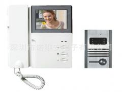 功能特点:带呼叫,监视,对讲,开锁,红外夜视功能1、高清4寸黑白显示器,420线2、红外夜视防雨功能。3、电控开锁功能。4、有监视室外的功能。5、图像亮度、色度和音量可调节。6、防氧化及耐磨表面处理的铝合金室外机。7、12种铃声可选,不会老是听到单调的门铃声。8、室外机精美小巧,铝合金外壳,带夜视红外功能,壁挂式安装简单方便.9、彩盒包装,6台一箱.10、本公司所有产品都具有,一拖一至六11、室外开锁功能性能参数:1、开关电源:AC220V--50Hz DC12V1.2A2、整机电流:小于800mA3、通话延时时间:100S±10%4、监视延时时间:60S±10%5、摄像机传感器:CMOS/CCD6、镜头:3.6MM92度7、室外机带红外夜视功能8、室内机外形尺寸:(H)225×(W)190×(D)48mm9、室外机外形:钛色拉白表面尺寸:126×80×7mm 安装尺寸:108×66×28mm(实际尺寸) 埋墙底壳尺寸:114×73×30mm(实际尺寸)(此款外壳为双底壳) 安装方式:装门上或嵌入式.10、室内安装方式:壁挂式