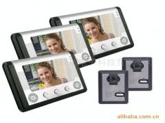 功能特点:带呼叫,监视,对讲,开锁,免提,室内双向呼叫对讲.免打扰功能(可做内置电源)1、7寸TFT液晶,无辐射、低功耗,高清晰度的宽屏图像。2、免提对讲功能。3、电控开锁功能。4、有监视室外的功能。5、图像亮度、色度和音量可调节。6、防氧化及耐磨表面处理的铝合金室外机。7、室内机超薄型设计,铝面板,电镀按钮,美观尽显豪华气派。8、12种和弦声可选,不会老是听到单调的门铃声。9、室外机铝面板外壳,带夜视红外功能,壁挂式安装简单方便.10、彩盒包装,6台一箱.11、本公司所有产品都具有,一拖一至六;二拖至六.性能参数:1、开关电源:AC220V--50HzDC15V1.2A2、整机电流:小于800mA3、通话延时时间:120S±10%4、监视延时时间:60S±10%5、摄像机传感器:PC1030 420线/SHARP1/4 420线/SONY 1/4 (可选)6、镜头:6MM62/3.6MM92度(可选)7、室外机带红外夜视功能:低开10LUX红外开启8、室内机外形尺寸:(H)165×(W)235×(D)35mm9、室外机外形尺寸:(H)127×(W)95×(D)34mm10、室外安装方式: