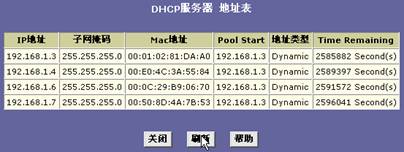 DHCP服务器地址表列举了一些当前分配给本局域网内计算机的IP地址,对于每个分配的IP地址,这个表格列出了以下的详细信息。