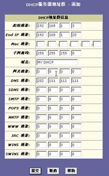①起始填/End IP地址:指定所分配IP段的起始和结束的IP地址,最大范围可达254个地址。