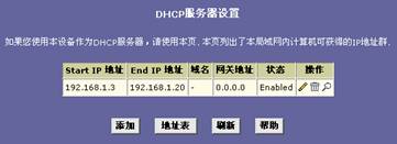 在“DHCP服务器设置页”中,在操作栏中有三个图标: 我们可点击相应的图标来更改、删除和查看设定的IP地址群。