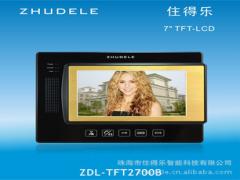 可视楼宇对讲系统· 新颖的外观,纯金属机身质感,外观以及高品质的对讲技术, 高清 CCD 摄像机使图像色彩逼真细腻;· 坚固防爆防水金属铸造门口机,突显层次与品味,彰显国际品质,经典设计;· 摄像头可不同45度全方位调节,使摄像效果更佳;· 金属铸造及防氧化表面处理外壳,经久耐用,金属按键透蓝光,给您舒适的视觉效果;· 蓝光运用,彰显科技的魅力,能在夜间清晰操作;· 在夜间能清晰使用,夜光按键;· 主机可刷卡开锁;· 总线制布线(6芯线+视频线),安装调试简单;· DC18V±10%,工作时9W,待机0.5W;· 国际标准设计及生产,安装简单方便.7寸彩色分机: ZDL-TFT2700W 尺寸:长250×宽180×厚26mm· 高品质原装TFT-LCD数字液晶屏为您呈现高清画面;· 采用国际先进的LED背光技术,广色域,亮度高,低碳环保,耐用性能稳定;· 外壳采用高光高透明度耐磨PMMA材料和优质ABS材料。· 新颖的材料和独特的表面处理,成就了它细腻精致的完美特性;· 外观欧洲直线硬朗设计,结合流行元素,外观高档美观;· 给您的家居增添艺术美感和时尚创意;· 分机自带解码功能,编房号简单;· 采用SMT贴片生产工艺,保证品质更稳定;· “浪涌”保护功能,避免因雷击等强电流造成损坏;· ESD(静电防护)保护功能,环境适用能力强;· 采用防脉冲抗干扰技术,产品的稳定性更强;· 图像亮度、彩色度、响铃音量可调节;· 12种和弦铃声可自由切换,优雅悦耳;· 监视、对讲、开锁、等功能;· 总线制布线,布线简单;适用于小区楼宇对讲、公寓楼、单元楼技术参数· 音频不失真率≥50mW· 通话时间: 90秒· 监视时间: 30秒· 频率响应:300~3400HZ±3dB· 工作电压:DC18V±10%· DC18V±10%,工作时5W,待机2.5W;· 安装方式:免提壁挂(配套安装支架)