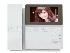 适用机型选择,拓展无限可能,简约精练,操作简单,十二种和弦铃声,完美声效,具有对讲、监视、开锁、呼叫功能一、前言 楼宇对讲系统是现代居家最为理想的一种安全防范装置。它除具有普通对讲分机呼叫和通话等功能外。最大的优越性是:主人可以随时在室内通过屏幕察看门外情况,准确判断来访者身份,决定是否接待。这无疑会给用户带来极大的安全和便利。二、可视分机概述1、显示器采用4寸扁平CRT,具有高分辨率和清晰的图像;2、分机可以发出呼叫振铃声;3、用户可以与来访者(或管理中心)通话,并可按键开启电控门锁;4、系统具备显示来访的影像和通话保密功能;5、系统空闲时,可启动监视功能,主动察看户外情况。三、主要技术参数1、显像管 4英寸黑白扁平显像管2、解晰度 500条电视线3、扫描频率 15625Hz(H)×50Hz(V)4、电源电压 DC12~18V5、视频信号 CCIR制式,75Ω阻抗、1Vp-p6、音频信号 全双工方式7、消耗功率 待机状态0.5W;工作状态10.5W8、配线方式 6线制,有极性五、操作说明1、来访者在门口主机键入房号,呼叫自动启动。对应房号的可视 分机将打开显像屏幕显示影像,并发出和弦音;2、不摘取通话手柄,可视分机将持续振铃,并在30秒后自动关机;3、摘取通话手柄,可与来访者通话,限时45秒,挂下手柄可关机;4、分机被摘机后,可按下开锁键,打开本单元门电控锁; 系统的保密功能;5、按下监视键,可打开显像屏幕约30秒,您能监视门口情 况。如果系统正在处理其他呼叫或其它住户正在使用监视功能, 此时占线指示灯亮,您的监视将被拒绝,屏幕不会打开,这正是 系统的保密功能;6、调节对比度调节钮(下面),可以使过亮、过暗或层次不清的图像 达到满意的效果;如果图像整体过亮或过暗,您可以调节亮度调 节钮(上面);7、按下呼叫键,可呼叫管理中心,呼叫信号将即刻传至管 理中心;8、管理中心呼叫住户分机时,可视分机发出“嘟--嘟”的振铃音, 摘取通话手柄,可与管理处通话,限时60秒,挂下手柄关机;9、调节对比度调节钮(右边),可以使过亮、过暗或层次不清的图像 达到满意的效果;如果图像整体过亮或过暗,您可以调节亮度调 节钮(左边);注:第7、8项的功能,仅当系统配备有管理中心时,方可实现;系 统可能因型号或设置不同,振铃、通话和监视限时的时间长短 略有不同;如系统有其他特殊配置,请向管理处咨询。