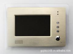 功能特点7寸彩色显示屏。具有免提通话功能。接受访客呼叫、对讲、遥控开锁。待机时,可按监视急键视大门口情况。待机时按呼叫键,可呼叫管理员机并直接通话。技术参数电源输入 音频电压:DC12V、视频电压:DC16-18V工作电流 静态≤5mA 动态≤350mA音频响应 300~3400HZ显示屏 7寸彩色显示屏输出功率 ≥100mAW通话方式 主呼、被叫(双向)图像分辨率 彩色:22万像素视频信号 15625HZ 1VP-P 75欧安装方式 平面壁挂安装外形尺寸 255×165×28mm