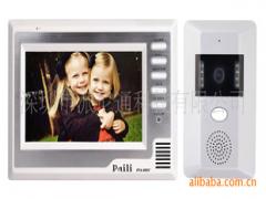 PAV-8012C 品牌:PAILI 一对一别墅可视楼宇对讲门铃产品简介:经典嵌入式一对一 7寸彩色可视门铃 适用于豪华别墅 家庭用户 办公场合使用,来访客人在外面一按门铃,室内机自动打开图像,按室内机应答键与来访者通话,轻按开锁按钮电锁自动打开,不用在跑到门口开门,平时待机时按监视键可以监视外部环境。功能特点:<1>:室外机迷你铝合金拉丝完美设计。<2>:7”寸TFT液晶显示屏、无辐射、低电耗、高清晰度的宽屏图像。<3>:免提对讲功能。<4>:电控开锁功能。<5>:有监视室外功能。<6>:图像亮度、色彩和音量可调节功能。<7>:防氧化以及耐磨表面处理的铝合金室外机。<8>:室内机超薄型设计、尽显豪华气派。<9>:12种和旋音声可选、不会老是听到单调的门铃声、性能参数:<1>:开关电源:AV220V-50HZ DC15V1.2A.<2>:整机电流:小于800MA.<3>:通话延时时间:120S±10‰.<4>:监视延时时间:60S±‰.<5>:摄像机CCD:1/3:OV7949 COMS/1/4:SHARP/1/4:SONY.<6>:CCD镜头:3.6MM 角度:92度。6MM 角度:62度。<7>:室外机带红外夜视功能。<8>:室内机外尺寸:(H)165*(W)235*(D)35MM<9>:室外机外形尺寸:颜色:(钛色拉白)外壳表面尺寸:126*80*70安装尺寸:108*66*28(实际尺寸)埋槽底壳尺寸:114*73*30,(实际尺寸)此款外壳为双底壳。安装方式:安装在门上或者嵌入式都可以。外壳材质:铝合金表面喷砂拉丝,高温氧化拉铝合金面板,耐腐蚀、抗磨损性强,自然氧化色彩,无漆无毒,环保健康。<10>:室内安装方式:壁装式<11>:连接线:4芯线(配套5米线)+2芯线开锁线(配套端子线)7寸 4线制一对一彩色液晶可视楼宇对讲门铃基本功能:带监视、对讲、开锁、免提、红外夜视、免打扰。防雨水功能。12种和弦音彩铃选择。1:显示屏尺寸:(英寸): 7寸”2:制式:PAL制/NTSC制可选。3:液晶屏品牌:瀚彩/奇美4:液晶屏像素:1440(H)*234(V)5: 显示屏亮度CD/M2: 250。6:显示器角度:65/65/40/65。7:室内机重量:563克。8:电源供应:DC15V-1200MA.9:工作功率:6W.10:延迟通话时间(S):120S±10‰.11:线接有效距离:100米(4*0.65MM2)。12:工作温度:-10°+50°13:待机温度:-20°+60°14:室内机尺寸:235.5(长)*165(宽)*32(厚)15:室内机安装尺寸:挂装/放置在桌面上16:室外机尺寸:126*80*35。17:室外机埋墙底尺寸:114*73*3018:摄像机芯片:彩色COMS PC1030 /SHARP/SONY19: 像素:PAL:628*582/NTSC:510*49220: 功率:3W.21: 清晰度:420TVL.22: 制式:PAL/NTSC可选。23:CCD镜头大小:3.6MM24:CCD镜头角度:92度25:总机待机功率:0.5W26: 产品配置清单:室内机1台、室外机1台、电源:DC15V1.2A一个、5米4芯连接线1条、端子线1条。挂板:1个、说明书1本、螺丝包1包。彩盒一个。本厂安防监控产品包括楼宇对讲系统一年保修。