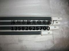 管径 长度 电压 功率 17mm 300mm 110v 550w 17mm 400mm 220v 700w 17mm 500mm 220v 850w 17mm 600mm 220v 1000w 17mm 600mm 220v 1200w 17mm 750mm 220v 1300w 17mm 850mm 220v 1500w 17mm 950mm 220v 1800w 注意事项:1。黑晶管远红外线辐射器应横向水平安装,如有特殊情况,倾斜角不得大于15°2。照射距离离工件200-300MM最佳,尽可能配备反射罩使用,效果会更为明显。3。避免剧烈振动和碰撞,以免断裂损坏