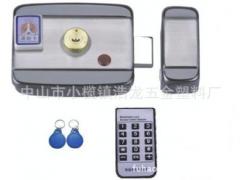 功能简介:1.-----ID卡刷卡开门,刷卡距离<6厘米,内外都可以刷卡开门,里面可以手动开门,外面可用钥匙开门,独立双读卡头,方便安全可靠。2.-----可学习(对码)型无线遥控器,可学习市场上的任意的315M的无线遥控器。学习后就能一键开锁!3.-----外装锁头,锁头配备3个钥匙,用于掉电时备用。4.-----锁体可外挂报警警号,当锁被非法撬开,入室行窃时,警号立即发出大于100分贝的报警声。5.-----可设置开门超时功能,作为公用场合的门如果被打开没关时,报警警号立即发出提示声。开门超时时间可由自己任意设置1-99分钟,或关闭该功能。6.-----配置一个12键无线遥控器用来管理:增加或删除ID卡、学习新遥控器,开关防撬报警功能,开关开门超时报警功能,开门超时时间设置,密码开锁功能等等。7.-----可接入可视门铃、楼宇对讲系统,由系统来操作开锁,远程开锁等。支持正、负信号开锁,任意的电平信号都能开锁。8.-----关门自动上锁,开门锁舌自动收缩无碰撞无噪音。产品特点:◆每套遥控锁都有一组独立的调制编码,互不干扰,互不影响;◆低噪音设计,开关门无撞击无噪音,属于超静音锁,全机械结构,使用寿命长;◆一体化设计,安装更方便,外观更美观;◆控制盒与电控锁之间采用接线座,用螺丝刀即可完成线路安装,方便快捷;◆采用直流9-12V开关电源供电,与照明线路完全隔离,安全放心;◆只要一按遥控器就开门,关门无需控制,一拉关上便可;◆遥控器设有拉杆天线,信号好,控制准确;◆遥控距离30米以上(空旷),耗电极微少;◆具有正极及负极控制开锁功能,与所有楼宇对讲、门禁智能化保安系统、可视门铃系统可以直接配套,无需修改;◆锁舌伸出长度≥20mm,符合GA/T73-94-5.1.6B级标准;◆使用电压DVC12V,静态电流≤10mA,工作电流≤100mA,瞬间截止电流≤500mA,开锁灵敏度高;◆锁头外部固定圈采用LED灯盾牌读头代替,高雅、大方,更适合于晚上开门,更直观,吸引目光。本锁标准配件:门锁一把,全铜锁头一个,三条/五条月牙钥匙可以多配,具体情况可与我联系。12键无线管理键盘一个带LED盾牌读卡头一个