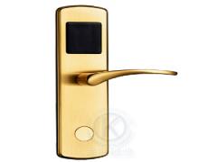 此型号为纯铜材质功能:使用卡片:支持使用Mifare、Temic卡分级管理:不同级别权限管理,体现星级服务扩展功能:可以扩充为一卡通,如消费,考勤,停车场管理等操作简便:只需将感应卡放在锁感应区内便可开启时间控制:可限制开门时间 ,避免催欠客人消费的尴尬紧急开门:可通过应急卡或机械钥匙在紧急状态下开门离合手把:防止外来压力破坏内部结构系统构成:感应卡、感应锁、发卡机、数据采集仪、管理软件、机械钥匙特点:外观高雅、豪华门锁电路高度集成化设计,集微处理器、时钟、存储器于一体,便于工作使用和管理游离式把手设计防止外来压力破坏内部结构采用电机带动锁芯独特的应急钥匙,难以复制,安全性高一体化结构,设计紧凑,整个锁体为全封闭结构,安装方便,安全可靠IC/RF卡:选用SLE4442卡/T5557卡符合IS07816标准的其它IC卡数据保存:10年以上重复使用次数:10万次以上信息容量:256字节,门锁只用了50字节,剩余可用作一卡多用密码位数:6位16进制数工作电压:直流3.0V~15.0V正负10%门锁:重量:3~3.5KG工作电源:直流6V,必须用4节5号碱性电池,可开锁10000次以上耗电:平时小于10微安开锁:300毫安左右(只持续100毫秒)工作温度:0~70摄氏度(特殊要求可达-25~85摄氏度)抗静电:大于15000V开锁记录:250条(卡号之时间)欠压指示:小于4.8V时红灯亮,此时仍可开锁50次以上