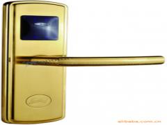 酒店锁系列 Hotel Lock Series■ES0502RF感应卡酒店锁RFInduction Hotel Lock酒店锁产品卓越特性简介Hotel Lock Introduces Of Excellent Characteristics外观时尚高雅,使用非常方便;采用最前沿微波感应技术,即使将卡片放在黑色皮夹也能轻松开锁;感应卡加密,管理卡片锁权限细化到每个房间,锁内记录最近200次以上的开门记录,安全严密;卡片锁和机械开锁均有记录;锁芯采用国际标准的五锁舌结构,安全有保障;感应罩采用增强聚酯材料,坚固不易被破坏;先进的门锁表面电镀工艺,经久不褪色;备有机械应急开锁装置,机械钥匙也可实现分级管理。Fashional and elegant appearance, very convenient to use;Use the most advanced microwave induction technology, even the card be put on a black wallet can open the door;Induction card add password, management card lock permission fine to each room, the lock can record the recent opening records for more than 200,high security;Opening by mechanical keys and cards also can be record;The structure of the lock cylinder accords with international standard which has five latches;The material of inductive hood is reinforced polyester which is solid and difficult to be destroyed;Advanced plating technology on the lock surface, durable and colourfast;Emergency mechanical keys unlock device is available, the keys due to be unified distribution.酒店锁产品主要功能介绍Hotel Lock Main Function Introduces分级管理——15种不同功能权限的卡片;限时功能——客户预期离开时间一到,开锁功能自动失效;记忆功能——锁内记录最近200次以上的开锁信息;免打扰功能——门锁被反锁后,除了紧急卡以外的任何开片均不能开锁;报警功能——出现电压不足或门未关好等异常情况,门锁自动发出声光双提示报警信号;常开功能——使用常开卡可以将门锁任意设置成常开或常闭状态;多房卡功能——需要时可以使用一张客人卡同时开启多个房间门锁;通道功能——需要时可以设定为四种通道锁:房间通道、层通道、楼通道、总通道。Grade management, a total of fifteen types of different functions and authorities;Time limited function, as long as the guest is expected to check out, the guest card will be inoperative automatically;Memory function, the lock records the latest more than 200times unlocking information;Always-open function and undisturb function, demand for different occasions;The function of muti-room and access cards, we can use one guest card to open several different rooms’ locks if necessary;The lock can automatic alarm for voltage shortage or not shurt the door properly.其他说明 Other Pelp内置万年历,能够自动调整闰年,走时准确;红、黄、绿三色指示灯和蜂鸣器组合成多种声光信号指示门锁状态和卡片信息;多种表面处理供您选择:铜拉丝、不锈钢拉丝、珍珠银、砂金、金边金砂面、银边银砂面等;备有机械应急开锁装置,机械匙可单配或多配;采用符合国际规范的执手把式,有左、右执手(LH / RH)之分;每次刷卡只能开锁一次,最长等待时间6秒钟;更换电池非常方便快捷Built-in calendar, can automatically adjust the leap year, and accurate travel time;Red, yellow, and green light and buzzer sound and light signals into a variety of combination lock status indication and card information;Choose from a variety of surface treatments: copper wire drawing, wire drawing of stainless steel, pearl silver, gold, gold sand in Phnom Penh side, silver edge silver sand surface, etc.;Equipped with mechanical emergency unlocking device, equipped with mechanical key can be single or multiple services;Implementation of international standard with hand-style, with left and right handle (LH / RH) to the other;Each card can only unlock one, the longest wait time of 6 seconds;Quick and easy battery replacement.产品属性 Product Features表面处理:不锈钢拉丝/铜拉丝把手材质:不锈钢面板材质:不锈钢外面板:285×74×16.40(mm)内面板:38~50(mm)适用范围:高档酒店房门、小区入户门等Surface Treatment: Stainless steel wiredrawing / copper wiredrawingHandle Material: Stainless steelPanel Material: Stainless steelOutside Panel: 285×74×16.40(mm)Application Door Thickness: 38-50(mm)Available for: High-grade hotels gate, residential entrance and so on.