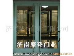 关于“摩登门业肯德基门”牌高级电泳铝合金地轴门特点的说明 ,“摩登门业”牌高级电泳铝合金地轴门是济南摩登门业有限公司引进德国技术,结合中国市场实际自主研发生产制造的,产品无论从外观设计、内在质量、使用寿命、密封程度都堪称国内同类产品中的精品。本产品被广泛地使用于高级中西餐厅、高档娱乐场所、医院、高档楼宇,购物中心、连锁专卖店、运动场馆、企事业单位、各类高级商厦等场所。本公司产品是国内同类产品中质量最好的顶级高档门。其特点如下:一、设计先进前卫、新颖、线条简洁明快、1、门框与门扇配套提供、地铰链盒坚固耐用,该门可多次拆装,重复使用。2、门体安装完毕后,通身无一处焊点,无一个螺钉,美观极致。3、门体的型材、天地铰链、地铰链盒、锁具、天地插销、门拉手等五金件皆为自主知识产权产品(市场上同类产品皆为仿冒)。二、用料精良1、门体及框架型材,采用专利模具,由中国名牌免检“凤铝”牌铝合金厂家生产。根据不同受力部位,壁厚均在2mm-3mm之间,确保坚固耐用不变形。表面经电泳技术处理后,防辐射、防腐、耐磨,越擦越亮,手感柔和、美观大方。可以达到10年不腿色,不老化。2、门铰链采用专利地轴技术,顶天立地,受力合理,前后上下左右调整方便,门扇开启轻便自如,门体不下坠、不倾斜。3、闭门器采用原装德国多玛进口闭门器(德国最好的闭门器),开启力度适中,闭门轻柔,不撞击门框,不夹人伤人(地弹簧无法比拟)。德国多玛地弹簧是世界著名品牌门控