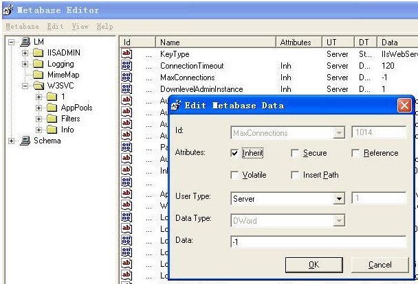 这个是管理IIS的小工具,叫MetaEdit按照盖茨那老东西说的,只能在nt4和2k上用,但是经过试验证实也能在xp上用