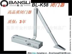液压闭门器BL-K58标准技术表: 1:采用铝合金精密压铸本钵,质量优越,放心使用。2:完美的传动活塞与齿轮的配合,用特殊的高强度材质制造,确保闭门器时间,宁静高效操作。 3:采用高强度防漏结构,防止因外来强压或强风状态下闭门造成的损坏或漏油,延长使用寿命。 4:采用优质碳素钢齿,活动塞结构,力量传动平稳,宁静。 5:可随意安装在左开门或右开门,不用调整。 6:利用两个独立速度调节阀,能精确调整120°--15°和15°--0°的闭门速度。 7:售后服务:帮力系列闭门器可正常运转30万次,保质2年。如果发现质量问题,请及时跟当地经销商联系,经过我厂技术人员鉴定是质量问题的话我司无偿退换帮力闭门器产品特点:采用专门设计的高精密油封,防止机体漏油,高强度机体,是质量根本的保证,进口高品质液压油,无论严寒酷暑都可保证开启自动,运行平稳、品质稳定、经久耐用,提供两年品质保证。用于轻型门,左右开启,可以两段调速,提供定位和不定位两种。