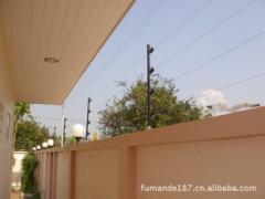 军事基地安全保卫工作的现状军事基地是国家的武装力量,高度机密的机构,保密级别较高,它的安全防范工作极为重要,而传统采用的交流电网容易致人死亡,误伤事件时有发生,影响军地关系。因此,集阻挡、威慑、报警功能于一身具有可靠的安全性的电子围栏系统在军事基地具有非常强的适应性,应用极多。军事基地的安全保卫工作特点:1.军事基地周界大,入侵者很容易藏匿。2.军事基地皆为保密机关,一旦有人进入盗取资料,将造成不可估量的损失。3.传统红外报警方式,存在漏洞,易被入侵,经常误报,且设计理念落后,与人防难以有效结合。4.偷盗者的入侵,非常容易引发安全事故,不仅生命有危险,而且造成资源的浪费,给国家带来巨大损失。电子围栏在军事基地的应用优势具有威慑功能高压电网和警示标志给犯罪分子以极大的心里威慑作用,避免其实施犯罪行为主动防护性强企图跨越时给与电击,起到很好的主动防护效果防范严密无死角可以依据地形任意架设,没有死角,消除安全盲点误报率低能有效防止小动物、树枝、恶劣天气等造成的误报使用、维护方便可以适应各种安装环境能与安防、IT系统联网可以与监控联动,当报警时,摄像机转向相应位置开始录像;也能很好的融入IT系统软件可以实现远程操作,方便管理从围墙现场到指挥中心距离很长,所以需要远程控制,比如远程开、关机等