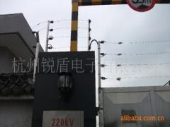脉冲电子围栏的安装要求一、系统前端总示意图 如图整个系统的前端由防区探测器,终端杆,终端杆绝缘子,终端杆绝缘子固定夹,PV挂线杆,PV挂线杆绝缘子、挂线杆底座,转角杆,转角杆绝缘子,紧线器,线-线连接器,警示牌,避雷器,18#合金丝,高压绝缘导线,及电源线,通讯线等组成。二、电子围栏按其在现场的安装位置,主要分为独立式、墙顶式两类。一、独立式电子围栏 独立式电子围栏,直接安装在地面上。由于其高度达2米以上,导线数达12-20线,所以,导线对终端杆的张力较大,因此,终端杆必须有足够的强度,终端杆的埋设必须稳固。如果土质坚实,可直接将终端杆的下端埋入地下600mm作固定。如果土质较松软,则应埋入混凝土基础之中,增加其稳定性。如果终端杆的刚性不够,应增加支撑(下图)。终端杆间最大距离:60m。 挂线杆,虽不承受导线的张力作用,但必须支持众多导线的压力,因此,也需要安装的稳固。同样可采用埋入法安装。挂线杆间最大距离5m。墙顶式电子围栏墙顶斜向安装墙顶侧向安装墙顶式电子围栏,直接安装在围墙顶部。终端杆、挂线杆的安装,可采用预埋方式,直接用电锤在墙顶打孔(深度约25CM,终端杆孔¢50挂线杆孔¢20),先将水泥浇入孔内,然后将杆插入。如安装在墙体侧面可以有打膨胀钉、安装金属底座等方式,采用竖直向上安装方式可以直接用膨胀螺钉固定,而采用一定倾斜角度安装方式时,应先将金属底座固定在墙上,然后将挂线杆插在底座中,用螺栓锁紧。
