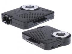 产品描述:本产品是苹果标准配件,内用苹果原装解码芯片,可以非常流畅的输出视频图像进行播放。产品最大功耗为450MA以下(声音最大状态).开机的初始电流设在350MA左右,可以完整播放两部电影且还预留20%以上的电量供苹果使用。镜头设有调焦功能,通过调焦来调整图像的清晰度;可以取代标准的苹果AV线,取代IPOD的外部音响,且可取代苹果标准充电器(用普通充电器连接就能充苹果了)。适用于儿童学习,时尚白领,业务精英.旅游外出露营等。操作方法:一:产品可根据苹果机供电与外部USB供电的先后选择其使用性能。1:先由苹果设备供电(此时再插入USB充电),则上电10秒内产品需要同苹果设备进行相互认证,当电源LED闪烁3下时表示认证通过,苹果便可以视频输出了,此时就可以进行相关的投影或连接电视等视频播放动作了(在产品同苹果认证期间可以播放歌曲,但如果要播放视频文件则没有视频输出)------标准的供电方式。2:先通过USB供电再插入苹果方式,此时产品就相当于是个音响+充电功能,此功能主要是为方便用IPOD用户要用本机的显示屏来看视频时有外接音响功能------省电模式播放。二:产品的按键使用方式:1:产品的按键是复合键设计,每个按键都有轻触发和长按键功能(紫色为长按键功能---长按1.5秒启动,黑色为短触发功能).可以通过按键来直接操控苹果.值得提醒的是:在只播放音乐文件时不要打开投影功能,这样可省50%以上的工作电量,延长播放时间;具体有电源指示灯提醒(当电源LED一闪一闪的情况下表明投影部分处于工作状态)三:产品的应用范围:设计理念三大功能三大特点,具体如下:1大功能:可以直接由苹果供电投影,(操作方式详见“供电先后选择其使用性能说明第1小项”)。主要用于家庭娱乐和外出娱乐,例如在外露营,晚上可以直接将其图像投射到白色帐篷上看电影,可以用普通的充电器充苹果设备。2大功能:可以将苹果内的图片文件视频文件输出到家庭影院来播放,更加清晰的观看自己的所拍和电影。3大功能:可以将多媒体的视频由本产品微投出来,使其有图像有声音。例如一个家庭没有多余的电视或电脑,小孩要学习光盘的话,就可以用此产品连接VCD或DVD等多媒体产品输出AV信号直接投影,这样就不会因为电视等视听设备不够而造成耽误小孩学习了同时也满足大人的娱乐需求。4为三大特点:可以取代苹果的AV连接线,取代苹果外响,取代苹果充电器。四:配件:1:主产品(投影仪)2:苹果夹子。3:三脚架。4:标准的USB连接线。5:标准的AV连接线。Display Technology播放技术:LCoS TechnologyAspect ratio比例: 4:3Focusing 调焦:Lens Focus LengthLamp source光源: White LedLamp life 灯泡: Over 50,000 hrsBrightness 亮度: 5lumensContrat ratio (FIFO) 对比度:>80 : 1Resolution分辨率: 320*240 PixelsProjector size 投影尺寸: 7.5” @ 0.3m 25” @ 1.0mDistortion失真:1.5%Field Angle(1/2)视场角:15Color Gamma (comparing to NTSC):>40%I/O Connectors I/O连接器: A/V IN ,Apple devices, Audio OUT,Video / Audio Terminal连接终端: DVD/PMP/DV/DC/PSP & All with AV out DeviceVideo compatibility 视频兼容:Apple device playback,Analog videoAudio compatibility音频兼容:Apple device playback,Analog audioSpeaker喇叭: 1W StereoPower source 电源: DC 5V,1AMaximum operating current最大工作电流:450MA(在投影和播放最大声音时的脉冲电流)Dimension 外形尺寸: 57.5x48x16mm (L*W*H)Weight 重量: 32g
