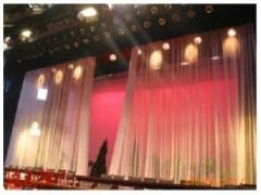 类似网纱的幕布,如果能艺术性的使用纱幕,纱幕会产生朦胧、魔术般的场景转换效果。 布料可选用具有阻燃的纱布。 |