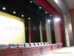(1)大幕大幕是观众厅与舞台之间起分割作用的幕,是舞台的门户,也是舞台的主要幕布,主要用于会议或演出开始和结束时的开闭,有时也可用作场幕。位于镜框舞台台口的内侧,镜框舞台与假台口之间。大幕有多种闭形式,例如:对开式、升降式、串叠式提式、单侧开闭式以及斜拉式等。对其操作控制系统也分为手动和电动两种形式。本海宁文化中心大幕设计为均匀伸缩对开式,此方式为时下较流行的一种,其性能稳定,使用寿命长,不易损坏。大幕的颜色和面料可直接影响观众的视觉,要求庄重而典雅。本方案大幕采用紫红色麻绒带本色衬里做面料,通过三折一的艺术制作,给观众以强烈的立体感。(2)前沿横帘幕前沿横帘幕是大幕前上台口上的横幕,用它作舞台上沿,挡住观众对舞台前沿上空的视线柱,它起装饰美化舞台的作用。前沿横帘幕与大幕形成配套,因而衬托了大幕,前沿横帘幕也称会标幕,可要根据不同的会议、演出,自如更换标语。(3)二道幕为独唱、独奏、曲艺等节目服务,起突出主角,烘托氛围的作用。位于舞台大幕之后,与第二道沿侧幕相近的一道幕。通常是以三倍打摺制成对开幕,本方案由于升降空间不够,只能为对开或提升两种形式供选择,从经济角度出发,本方案选择滚轮对开式。(4)三道幕或会幕(供选择的)主要为如开会议作后场的隔断作用,突出会议的重要性,烘托会议气氛。(5)横帘幕(横条幕)常用墨绿色,悬挂在普通吊杆和加长杆上,位于镜框舞台台口上方的幕布。与左右两侧的侧帘幕相配合,起到控制演出空间的视线的作用。(6)侧帘幕(侧条幕)侧帘幕位于舞台左右两侧,颜色与横帘幕一致,其对舞台表演区域起限制作用,其平行、正“八”字、倒“八”字等吊装方式可以改变舞台表演区平面的开头对舞台后部空间进行遮挡,引导、控制观众的视线集中在规定的表演区内。其主要是美化舞台,遮挡观众对侧台的视线。(7)白天幕白天幕位于镜框舞台演出空间最后部位,作为表现演出背景环境的幕布。其高度和宽度通常大于台口尺寸,可根据演出需要,将其设计成平面幕或弧型宽幕。白天幕朝向观众席的内侧,可用天排灯、幻灯等进行照明或投射各种色彩形象,与整个舞台空间形成一个整体的画面。本方案采取白色细帆布为材料,色白、吸光性能好。(8)黑底幕黑底幕位于舞台后部天幕之前,适合于表现为黑暗的场景空间,在歌舞伎戏剧中表现室外以及夜或者虚无状态,同时杂技表演时作背景幕用。采用黑麻绒三折一艺术制作。)(9)纱幕纱幕一般不作为剧场的固定装置,是以薄质地带有网状孔眼的棉布或化纤材料制成的半透明幕布。除本身所具有的轻薄,打摺后可以制作成各种装饰幕特点以外,还具有一定的透光作用。舞台上常用白纱幕、黑纱幕、纱画幕表现场景环境,从纱画幕后面向景物投光可以显现隐藏在后面的人物和空间环境,从而易于表现梦幻、回忆的虚拟场面;从前面向纱幕投光可以表现渲染纱画幕上所画的形象;从纱幕背面向纱幕后投光时,纱画幕前面所画的形象看起来则不复存在。其他单色纱幕也具备以上特点,只是白色及浅色纱幕反光效果强,深色、黑色纱幕可以更好地吸收舞台上的散射光,更易于表现虚拟、朦胧的幻觉空间效果。