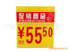 普华正和展示用品公司专业生产POP展示用品,产品多样化,生产速度快。做中国最好的卖场POP广告器具供应商。 翻价牌价格牌使用与超市以及卖场,是吸引消费者,刺激消费者购买欲望,能够让消费者一眼就能够得到产品的信息。 翻价牌价格牌使用与超市以及卖场,是吸引消费者,刺激消费者购买欲望,能够让消费者一眼就能够得到产品的信息。数字翻牌采用pvc背板,常规是1.00、1.50mm厚度;数字采用环保油墨丝印,不易掉色,韧性强;皮条是本公司生产,颜色可以定做。产品信息:1、数字翻牌包括单栏式、双栏式、三栏式以及台式数字翻牌。2、数字翻牌背板颜色可以定做,常规采用黄色背板。背板厚度有1mm、2mm,背板边缘可以丝印超市logo,标志。背板采用优质PVC制作而成。3、数字本是由0-9,10个数字合成的一个小本子,可以随意更换数字,展示不用价格。数字片是厚度0.45mmpvc制作而成,采用环保油墨丝印,不易掉色,不会产生异味。数字可以随意组合:三大两小、三大两小一单位、两大两小、一RMB符号一大两小等。4、常规尺寸有单栏600*600mm、580*420mm、500*400mm、450*450mm、435*280mm;双栏580*420mm、580*560mm、500*450mm、435*440mm、450*450mm;三栏435*440mm以及台式330*246mm。联系电话:13928761886 QQ:1343259735