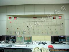 为适应现代电力系统各级调度所、电厂、变电站、交通、石化、煤炭、冶金、污水处理厂、自来水公司、隧道等领域施行调度指挥、实时工作状况、流程检测控制(包括四遥),公司应用计算机多媒体技术、网络技术和高性能集成芯片开发研制成功SY-2000智能型调度模拟屏,它采用一体化综合设计,开发了马赛克模拟屏加LED系统、马赛克模拟屏加遥视系统、马赛克模拟屏加投影系统等。该模拟屏采用分布式智能控制型结构,所有灯光器件、数据显示器件等单元功能上严格独立,每个设备自身集成了智能通信接口、译码通信功能,在逻辑上直接与单机片微机连接; 功能: 每个遥信、遥测点都含有一个单片机,且有固定的通讯地址,能独立完成对命令码的接收、解码、响应功能。 产品为一体化任意组拼结构,模拟屏具有较强的扩展性和设备配套能力,具有模拟【运行状态、分(断)、合(通)、失电保护】,显示元件自检,打印制表等功能。 模拟屏接口装置能与运行的SCADA系统通讯接口。实现:电网异常、事故时能报警闪光,系统自检设置符号、通讯检测、打印、显示等。 能将SCADA系统传来的遥测、遥信状态、控制信号传给响应单元,状态信息包括遥测值的正常置数、死数、越限,遥信量的正常变位、事故跳闸、检修以及状态信息解除。