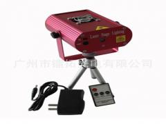 Mini Laser Stage Light User ManualThank you for using our products .For the sake of safety and better operation of this stage light, please read this manual carefully before using and operating it, lest incurany personal injury or damage to the stage light.Package List:1. Stage Light 1PC 2. AC power supply 1PC 3. Owner’s Manual 1PC 4. Tripod 1PC 5. Remote control 1PCBasic Operations:Power On: connect to power, press ON/OFF button to make the stage light work.Power Off: press ON/OFF button to turn it off when the stage light is at work.1.Speed adjustment: press MOTOR button firstly, the rotating speed slows down; press secondly, motor stops rotating; press thirdly, motor speed recovery to the initialsetting.2.Strobe function: press STROBOFLASH button firstly, the laser will flicker every 0.5 second; press secondly, the laser will flicker every 1 second; press thirdly, thelaser will be on steadily.3.Audio control: press MUSIC AUTO button, enter the Audio control mode, the laser flickers with the rhythm of the music. press again, return to automatic mode.4.Remote control: the supporting remote control can control related functions of the stage light.Notice:1.Please operate the stage light according to the manual strictly.2.This unit is intended for indoor use only and should be prevented from water, moisture and shake.3.The working temperature of this unit is 15~30°C, and it must be powered off after continuously working 2 hours to let the laser diode cool down.4.To keep the body of this unit clean to avoid any unnecessary troubles.5.Do not turn on and off it frequently and try to avoid making it worked for a long time.6.Do not use the telescope to watch the laser rays, otherwise will be largen the dangers.7.You had better use the original package during the transportation.Warnings:1.The grade of the laser for it is Class lllB, and will be dangerous if exposure to the eyes directly.2.The working voltage is AC110~ 240V/50-60HZ,once exceeded this range its lifetime will be shorten.Statement:All the stage light are examined strictly before shippment, in that case the user should operate it according to the manual strictly. we and the distributor will not beresposible for any mistakes cause by the wrong operations.Specification:1. Power: AC power supply input AC110 ~ 240V / 50 ~ 60Hz, output DC5.0V/ 1A.2. Laser generator: wavelength 532nm, power 50mw; wavelength 650nm, power 100mw.3. Dimension: 120 * 92*52mm.4. Weight: 0.5 KG