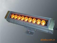 输入电压: AC 12V-110V-230V功 率: 9x1W色 温:单色/彩色材 质:全铝透镜角度: 25-120°光通量: 100lm/W规 格: L500xW92xH82mm出光板面:钢化玻璃防护等级: IP65控制方式: DMx5121、材质:铝合金挤压一体成型灯体,具有高效、优良的散热性能、表面阳极氧化或静电喷图、高压压铸铝合金侧盖、4mm强化玻璃、耐高温矽橡胶密封圈、1.6mm优质高导热系数铝线路板、高导热率1.59W.m/k导热硅胶;2、单颗LED光源: 1W/3W/5W3、颜色:红、黄、绿、蓝、白、暖白、RGB;4、透镜:光学级透镜,有15度、30度、60度可选;5、电压: 12V/24V/110V/220V,内置或外置电源;6、控制方式:常亮、内控同步固定变化模式、编号内控统一变化模式、DMX512控制模式;7、脚架可120度旋转调整投光方向;8、用途:室、内外墙体投光,泛光装饰作用。