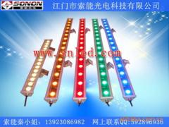 大功率LED洗墙灯是一种以大功率LED为光源,由红、绿、蓝组成混合颜色变化的投射照明灯具,可产生256灰度变化,智能控制器达到同步效果,并可接入DMX控台。用户可自己输入资料进行编程控制。该洗墙灯采用数码管地址,同时该洗墙灯内置固定程序,可实现同步、自联功能。该洗墙灯密封可靠,可调节投光角度、位置,使之处于最佳位置,达到最满意的照明效果。(缔造绿色低碳生活,选用索能LED灯饰)线条灯外壳尺寸:长任意*55*25、长任意*72*66 光源:采用进口1W,3W作为光源,寿命长、功耗低、色彩纯正、无污染等显著优点。 颜色效果:单色,RGB全彩动画、256级*3有效灰度、渐变、追逐、流水控制模式:DMX512 (控制形式:大功率LED洗墙灯有外控和内控两种控制方式,内控无需外接控制器可以内置多种变化模式(最多可达六种),而外控则要配置外控控制器方可实现颜色变化) 线条灯投光距离:根据透镜6~40米 可选透镜角度:16度 30度 45度60度泛光 线条灯镜面:玻璃反光透镜,透光率为98-98%,不易雾化,能抗UV辐射 线条灯灯体:纯铝材质,有方型,线型,可选长度:40、60、75、100、1200、1500宽度和高度固定不变 灯具发光角度 90° 防护等级:IP65电源规格:AC220±15%V功耗: 3W/6W/9W/12W/15W/18W/24W/27W30W/36W用途:城市亮化、楼体亮化、河道、桥梁亮化