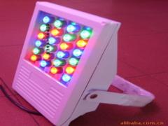 产品特点:灯体尺寸:L355*W235*H100mm,灯具可手动调整旋转角度180度发光颜色:红色/黄色/蓝色/绿色/正白/暖白/七彩等消耗功率:24W角 度:15/30/45/60/90度透镜可选灯体材质:高压压铸铝合金灯壳,耐腐蚀。高强度钢化安全玻璃。高质量耐热硅橡胶密封圈,密封性能好,纯铝散热器,能适应各种温湿度环境。防护等级:IP65;投射距离:15-20米使用电压:DC 24V 或AC220VLED数量:1W*24颗大功率LED 1W*36颗大功率LED工作温度:-20℃~40℃适用场所:主要应用于舞厅,商场,别墅广场雕像,星级宾馆,户外广告牌,庭院草坪,大楼景观照明,公园,城市亮化工程等的照明应用中。
