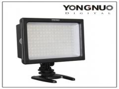 永诺LED摄像灯——YN160S功能特性:高品质色温准确,达到标准的5500K。b,功率强大,亮度均匀,由160颗高亮LED灯组成。c,高效节能,发热消耗少。d,聚光灯杯有效聚光,避免光的浪费。高寿命a,LED灯珠使用寿命在20000小时以上。b,热靴连接杆采用高效防断的工程塑胶,消除顾客的顾虑。c,采用纯铜的金属固定脚设计,有效的解决由反复拆装造成固定脚磨损的问题,且更为牢固。高易用a,16级微电脑调光,适用于各种光亮环境。b,支持多种类型常见电池,且可测试电池电量。c,拥有自动识别5号电池及锂电池功能。d,附带2块滤色板,适合各种拍摄氛围。e,可固定在摄像机热靴插座、微型底座、专业灯架或相机三角架上使用。适用电池可使用6节Hi-MH电池或6节AA电池、松下CGR-D16S/D220可充电电池、索尼NP系列可充电电池(本产品不包含电池)。包装内容永诺YN160s摄影灯一个、热靴灯脚一个、色温片两块、说明书一张。注意事项请勿让本产品淋雨或受潮,以免发生火灾。处理电池时,请将电池的触点包裹好以避免短路,并请遵守好当地处理电池的相关规定。请将电池或容易误吞的东西远离儿童存放,如果误吞了物品,请立即与医生联系。长期不使用产品时,请取出所有电池。