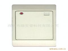 型号:支持ID/IC模块接口:wg26/34 ,RS232, RS485感应距离:5-15cm范围:适用于停车场管理系统,门禁系统等短距离射频领域一. 概述Mifare系列的13.56MHZ非接触式射频卡ID只读器是用先进的射频接收线路设计及嵌入式微控制器结合高效译码算法,完成对Mifare兼容式卡的ID系列号的接收,具有接收灵敏度高p工作电流小p单直流电源供电p低价位高性能等特点.Mifare系列读卡器适用于门禁p考勤p收费p防盗等各种射频识别应用领域.•使用说明:读卡器通电后, 红绿灯交替亮,然后红灯常亮 , 蜂鸣器常鸣一声.卡接近时, 红灯转绿灯闪烁一下再变为红灯.不同ID卡分别进入射频感应区范围,读卡器将连续读卡 .•安装说明:Mifare系列ID读卡器可直接安装在墙面或墙内,表面不能覆盖金属物.只读器将连续读卡•安装步骤:a)移开前面罩b)按读卡器上的两孔在墙上的相应位置打孔c)用螺丝把只读器固定在墙上d)盖上前面罩, 安装完毕二.特点•内置天线,工作频率为13.56MH•完全支持Mifare兼容格式IC卡•有效距离5~10cm•在有效距离内数据接收时间小于100ms•12V供电,工作电流小于70mA•Wiegand 26 bits/ABA/RS232/RS485标准格式数据输出•内置双色LED及蜂鸣器,相应外控功能三.界面描述