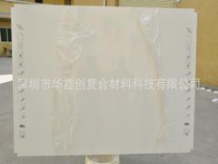 1:电子白板铝蜂窝板电子白板铝蜂窝板为哑白不反光PE聚酯涂层铝板,不炫目,色泽均匀,附着力强,适合投影。 性能: 1.平面拉伸强度≥1.0Mpa; 2.平面压缩强度≥0.6Mpa; 3.弯曲强度≥50Mpa; 4.耐温差性:在85℃下恒温1h, -40℃下恒温1h,此为一个循环,共进行25次循环,无鼓泡、 开胶、剥落现象; 5.符合欧盟ROHS指令要求。 6.比重轻,强度大,刚性好,平整度高,结构稳定,坚固耐用。