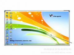 -----------------------------------------------------------------------------VIZ-PRO触摸式电子白板特点大介绍:①采用先进的光学模组定位,支持多点触摸,响应快,操作灵敏,触摸手写无延时(直接用手指点、画、划)。②即插即用USB接口,无需外接电源。③白板由高度耐磨的珐琅投影材料制成,低反光,表面坚硬防割划。④与液晶电子白板相比,我们的产品具有价格低、易维护等先天优势。⑤多种规格,也可根据您的需求,为您定制。⑥即可作电子白板使用,也可作普通白板使用,投影、板书,一板搞定。http://v.youku.com/v_show/id_XMzQzODQ3MjQw.html视频演示地址全民触摸时代来临了!把这个100寸的IPAD搬回家吧!技术原理傲世大尺寸触摸屏采用最先进的光学影像处理技术,通过放置在触摸屏左右上角的两个摄像头和四周的红外反射装置实现触摸功能,与现有其他触摸技术相比,它具有精度高,书写流畅性,成本低等特点。并且可以通过与Windows 7操作系统的完美结合,实现多点触摸和多种手势动作识别。