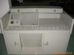 多媒体讲台是近几年工厂配合学校的发展新增加的教育设备,具有防撬,防破坏,防盗等功能。工厂品种齐全适合不同层次的学校使用。产品介绍:多媒体讲台,是一种将讲台与电脑合为一体的产品。设计新颖独特,使用灵活方便,全部采用优质冷轧钢板制作,表面喷塑处理。具有外观美观防锈等功能。产品类型:l双层固定型l风琴式翻后前推型。l左右移动式。外形尺寸:长1400mm 宽730mm 高950mm结构特性:l材料:选用优质冷轧钢板,防火,牢固的特点l表面处理:经酸洗、磷化防腐防锈后静电喷塑,正常使用塑面经久耐用l整体造型设计以人为本,边角圆弧过渡,工艺精湛,高贵大方l盖板由路轨推拉和折叠相结合l控制面板、显示器面板为活动件,可以根据显示器的大小任意选定。l设备箱内隔板活动可调,所有铰链采用内藏式结构。l安全防盗,采用优质钩锁。适用范围:适应范围广泛:大中专院校、中小学校的多媒体教室,阶梯教室,普通教室,会议室,演播厅,以及各种培训教室、报告厅等等同类产品推荐更多产品细节