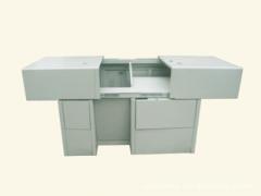 我公司生产的SLM多媒体讲台整体设计符合人体工学,精致优雅,高度集成,维护成本低,占用空间小,所有材料均采用冷轧钢板制作,白灰色和木纹色双色彩合理搭配,整体采用分体式结构;安装方法:将上下体摞起来,对齐螺丝孔,固定四个螺丝即可;选择对应的敲落空进线,将所有的设备安置对应位置。开启方法:两把钥匙控制整个讲台,滑动开启上盖门,翻转键盘,升降LCD显示器,按下LCD右侧开关,从右侧抽拉出隐藏的视频展台;对开下体门操作相应的设备;从展台位置可拨动维护后门插销,开启后门;参数介绍:1:优质1.0mm以上冷轧钢板,除油/酸洗/磷化/打磨/静电喷塑/白灰色(主体)+木纹(扶手/装饰板/后门)2:上体:带有钢制木纹效果的可拆卸扶手和装饰板(既LOGO张贴板)长890mm,宽680mm,高10-20mm;(因产品不断升级,此数据可能更改不再另行通知) 下体:长850mm,宽640mm,高660mm;底座选配件:长890mm,宽680mm,高10-20mm。设备安装:上体内:15-19寸液晶显示器,键盘,鼠标,中央控制面板,电源插座,视频展台。下体内:可调节隔层,电脑主机,中央控制器主机,DVD卡座,UPS。功放,话筒主机应用领域:大中专院校,中小学多媒体教室,阶梯教室,普通教室,会议室,演播厅,以及各种培训教室,报告厅,等等;另外我公司专业生产班班通工程与电子白板相配套的推拉黑板/绿板;欢迎到厂参观考察;联系电话:13688035552 028-66116646