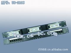 18口配线架:产品型号:U5E-210详细描述:一、什么是配线架 配线架是管理子系统中最重要的组件,是实现垂直干线和水平布线两个子系统交叉连接的枢纽。配线架通常安装在机柜或墙上。通过安装附件,配线架可以全线满足UTP、STP、同轴电缆、光纤、音视频的需要。在网络工程中常用的配线架有双绞线配线架和光纤配线架。 双绞线配线架的作用是在管理子系统中将双绞线进行交叉连接,用在主配线间和各分配线间。双绞线配线架的型号很多,每个厂商都有自己的产品系列,并且对应3类、5类、超5类、6类和7类线缆分别有不同的规格和型号,在具体项目中,应参阅产品手册,根据实际情况进行配置。 光纤配线架的作用是在管理子系统中将光缆进行连接,通常在主配线间和各分配线间。二、配线架的用途 配线架用途主要是用以在局端对前端信息点进行管理的模块化的设备。前端的信息点线缆(超5类或者6类线)进入设备间后首先进入配线架,将线打在配线架的模块上,然后用跳线(RJ45接口)连接配线架与交换机。总体来说,配线架是用来管理的设备,比如说如果没有配线架,前端的信息点直接接入到交换机上,那么如果线缆一旦出现问题,就面临要重新布线。此外,管理上也比较混乱,多次插拔可能引起交换机端口的损耗。配线架可以为您很好的解决了这个问题,通过更换跳线来实现了较好的管理。 三、适用范围:网络建设配线架可供超五类和设备电缆间的相互连接,配线架性能超载TIA/EIA-568-IA-606的要求,配线架快接端子板材质耐火,符合UL94V-0阻燃性标淮。配线架前信息端口上侧备有可写标签,便于标识与管理。可直接安装于标准19英寸机柜中。特别适合于小型办公室。SOHO、社区宽带网络应用环境。应用于局域网设备间,数据通讯,综合布线(主要是用于在后端对前端信息点进行管理的模块化的设备。前端的信息点线缆进入设备间后首先进入配线架,然后用跳线连接配线架与交换机。其应用坚固及易于安装,减少安装与操作费用,便于管理。符合19"机架安装标准,1U 2U高度。)四、配线架使用说明1.采用110整体打线设计,远远满足于六类传输标准,适用于设备间的水平布线,设备以及集中点的互配端接,正面标识数字方便端口管理,符合19英寸机架,机柜,墙柜等的安装标准。2.打线夹柱子为商强度聚碳酸酯,IDC打线柱子夹为磷青铜,适用于22-26AWG线缆,耐用性250次端接;通过线序标签支持T568A和T568B端接线序。3、电气性能:工作电压:125 V,耐压:750 V。100%通过FLUKE测试标淮。4、物理性能:插入力不大于20N,拔出力不小于20N;连接器连接装置的效果:50N60±5s;插头与插座的插合次数:750次;导线端接插次数:250次。5、使用和存放环境:温度:-40~+70℃;湿度:≤85%(温度85℃±3℃)。18口配线架 详图:同款其它 网络配线架:同同系列网络模块: