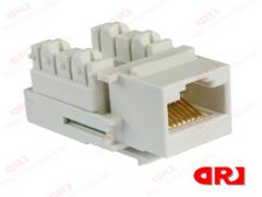 1.适用于设备间与工作区的通讯插座连接从而实现信号传输,满足EIA/TIA 568A/B超五类传输标准要求2.外形紧凑,使产品外观简洁,美观3.IDC端按注有的色标打线,便于快速,准确的打线4.配有防尘盖用以保护模块、遮蔽灰尘和污物进入5.插头和插座重复插拔次数≥750次6.IDC:可连接线经22~26AWG,卡接可重复次数≥200次7.接触电阻:正常大气压条件下接触电阻≤2.5MΩ8.绝缘电阻:正常大气压条件下绝缘电阻≥1000MΩ9.耐高压:AV 750V1分钟无击穿和飞弧现象10.塑体原材料:PC PBT防火等级为UL 94-V011.端子原材料:磷青铜12.RJ45接口端子:镀金15μ’’,30μ’’,50μ’’Cat.5e Unshielded Keystone JackSpecifications:Meet TIA/EIA-568-A and TIA/EIA-568-B Category 5E requirements.Meet TIA/EIA TSB-40Meet ISO/IEC Generic Cabling Standard 11801Meet CENELEC Generic Cabling Standard EN50173Angle: 90 DegreeTermination: 110- Krone-Dual typeElectrical:According to UL 1863Current rating: 1.5 Amp Max.Voltage rating: 150 VoltsContact resistance: 20 m-ohmInsulation Resistance: 500M-ohmDielectric Withstand Voltage: 1000 V AC RMS, 60Hz 1minMaterials:Housing: PC UL94V-0IDC: PC UL94V-0, Accept 22-26 AWG Solid Wire.PCB: FR4 1.6mm(0.04") thickness, 2 layersContact: PC Ul94V-0, 0.45mm(0.018") Diameter Phosphor bronze with 3 U" to 50 U" Gold plating on contact area |