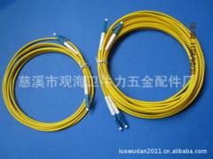 光纤跳线/光纤连接器光纤主要分为两类:单模光纤(Single-mode Fiber):一般光纤跳线用黄色表示,接头和保护套为蓝色;传输距离较长。多模光纤(Multi-mode Fiber):一般光纤跳线用橙色表示,也有的用灰色表示,接头和保护套用米色或者黑色;传输距离较短。光纤使用注意!光纤跳线两端的光模块的收发波长必须一致,也就是说光纤的两端必须是相同波长的光模块,简单的区分方法是光模块的颜色要一致。R>一般的情况下,短波光模块使用多模光纤(橙色的光纤),长波光模块使用单模光纤(黄色光纤),以保证数据传输的准确性。光纤在使用中不要过度弯曲和绕环,这样会增加光在传输过程的衰减。光纤跳线使用后一定要用保护套将光纤接头保护起来,灰尘和油污会损害光纤的耦合。长途及本地光传输网络、数据传输网络、图像传输网络、CATV、光学测试仪器、光电自控系统产品特点:用最先进的研磨技术和研磨设备,有力保证光纤的圆心研磨偏移、光纤的凹陷、光纤表面无划痕或瑕出疵、陶瓷端面曲率半径的大小等技术参数符合标准规定。插入损耗小、回波损耗大;互换性能,重复插拔性能优良,使用方便。公司可供选择的产品有ST、SC、FC、LC等指标。规格有多模单芯、双芯、双芯双护套等。插入损耗:多模≤0.30dB;回波损耗:PC≥45dB UPC≥50dB, APC≥60db接头插拔1000次以上,插入损耗变化量<0.20dB互换性:任意对接≤0.18dB温度范围:-40℃— +80℃抗拉强度:45Kg(φ0.9SM光纤除外)振动试验:<0.1dB(5-50Hz,1.5SM振幅)光纤外径:3mm/ 2mm/0.9mm产品选用指南 光纤跳线按端接类型分主要有以下三种类型:ST-ST、SC-SC、ST-SC。按光纤种类分主要有单模光纤和多模光纤两类。跳线长度的规格有0.5m、1m、2m、3m、5m、10m等。按线缆外护层材料可分为普通型、普通阻燃性、低烟无卤型、低烟无卤阻燃型等。 根据建筑物防火等级和对材料的耐火要求,综合布线系统应采取相应的措施。在易燃的区域和大楼竖井内布放电缆或光缆,应采用阻燃的电缆和光缆;在大型公共场所宜采用阻燃、低烟、低毒的电缆或光缆;相邻的设备间或交接间应采用阻燃型配线设备。