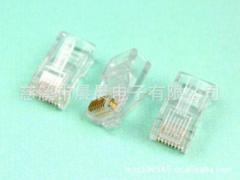 产品简介:水晶头是网络连接中重要的接口设备,因其外观像水晶一样晶莹透亮而得名为水晶头。主要用于连接网卡端口、交换机、电话等。水晶头分类RJ-45RJ-45接头:每条双绞线两头通过安装RJ-45连接器(俗称水晶头)与网卡和集线器(或交换机)相连。RJ-45插头是一种只能沿固定方向插入并自动防止脱落的塑料接头,俗称“水晶头”,专业术语为RJ-45连接器(RJ-45是一种网络接口规范,类似的还有RJ-11接口,就是我们平常所用的“电话接口”,用来连接电话线)。之所把它称之为“水晶头”,是因为它的外表晶莹透亮的原因。双绞线的两端必须都安装这种RJ-45插头,以便插在网卡(NIC)、集线器(Hub)或交换机(Switch)的RJ-45接口上,进行网络通讯。RJ11RJ11接口和RJ45接口很类似,但只有4根针脚(RJ45为8根)。在计算机系统中,RJ11主要用来联接modem调试解调器。 日常应用中,RJ-11常见于电话线。其它 还有一种RJ12通常也适用于语音通信的,结构和前两种一样,但是有六根针脚(6p6c)。同时还衍生出六槽四针(6p4c)和六槽两针(6p2c)两种。产品展示: