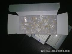 安普RJ45水晶头:适用于设备间或水平子系统的现场端接,外壳材料采用高密度聚乙烯。水晶头是一种能沿固定方向插入并自动防止脱落的塑料接头,俗称“水晶头”,专业术语为RJ-45连接器(RJ-45是一种网络接口规范,类似的还有RJ-11接口,就是我们平常所用的“电话接口”,用来连接电话线)。之所把它称之为“水晶头”,是因为它的外表晶莹透亮的原因。双绞线的两端必须都安装这种RJ-45插头,以便插在网卡(NIC)、集线器(Hub)或交换机(Switch)的RJ-45接口上,进行网络通讯。每条双绞线两头通过安装水晶头与网卡和集线器(或交换机)相连。 RJ-45RJ11接口和RJ45接口很类似,但只有4根针脚(RJ45为8根)。在计算机系统中,RJ11主要用来联接modem调试解调器。日常应用中,RJ-11常见于电话线,还有一种RJ12通常也适用于语音通信的,结构和前两种一样,但是有六根针脚(6p6c)。同时还衍生出六槽四针(6p4c)和六槽两针(6p2c)两种。 |