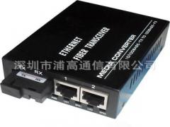 产品简介:10/100M双电口自适应快速以太网光纤收发器是完成10、100Base-TX到100Base-FX之间的光电转换。该收发器同时支持IEEE802.3 10Base-T、IEEE802.3u 100Base-TX、100Base-FX标准,能够有效的支持全双工或半双工模式,是校园和骨干网或交换共享以太网布线环境中的理想设备。可用于连接服务器、工作站,HUB、交换机;该收发器有单模和多模两种光纤传输模式,有多种传输距离(最远可达120KM)可供选择的光纤接口和RJ-45接口。为了适应我国供电网络的现有状况,用户除了可以选择外置直流供电方式外,还可以根据自已电网状况选择内置开关电源供电方式或48V供电方式。产品技术特点:1)支持IEEE802.3u.100BASE-T和100 BASE-FL协议2)支持全双工/半双工工作方式,并带有自动协商功能3)多模连接传输距离:2公里4)单模连接传输距离:20/40/60/80/120公里 5)整机发热少,性能稳定可靠6)即插即用,可上机架7)完备的LED状态指示,便于网络诊断和故障检查8)自动识别MD1/MD1-X交叉线和平行线9)良好的流量控制,带自复位功能,能有效防止死机现象出现 10)具有两个RJ-45+FX光纤接口交换机功能 11)提供双独立RJ-45电口,每个可以同时连接计算机网卡与HUB连接交换机、集线器12)全内置电源、小机壳设计外观独特,外壳尺寸大小:(120mmX86mmX26mm) 技术参数:标准协议: LEEE802.3Fast Ethernet 100Base-T和100Base-FL标准连接器: 两个UTP RJ-45连接器,一个SC/ST连接器指示灯:PWR、FDX、FX LINK、TX LINK、TX LINK、TX ACT工作方式: 全双工/半双工,具有全双工/半双工自动协商功能传输速率:10M/100Mbps电源参数:INPUT:110-260V AC 或48V DC OUTPUT:5V DC 1.2A 环境温度:-40℃~65℃相对温度:5%~90%TP线缆:普通双绞线传输光纤:多模:50/125,62.5,125or100/140um 单模:8.3/125,8.7/125,9/125or10/125um关于订货:1)电源:内置、外置2)光纤:单纤、双纤、单模、多模3)速度:固定速度、自适应速度4)光纤连接头类型:FC、SC、ST5)传输距离:0-100km