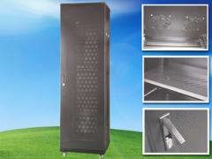 网络服务器机柜A款1.组合式拼装结构,便于安装及运输,2.前门(采用5MM钢化玻璃),侧门,后门均可拆卸,方便维护.3.顶底板有足够的散热网孔,顶底双进出线式,底部通风防鼠.4.底部设有万向脚轮和支撑脚,移动方便,安置稳固.5.全采用优质冷轧钢板1.0-2.0MM,承载负何<500KG.6.结构坚固,造型简洁美观,实用.