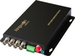 1、产品简介该产品采用最新光纤通讯技术,将4路视频,1路RS232/RS485/RS422数据复用在一条光纤上传输。视频信号兼容PAL、NTSC和SECAM制式。该产品安装方便,无需任何调节即可工作,可以在长达100公里的距离上传输高质量的视频、音频、数据和以太网信号。目前该产品广泛应用于广播电视传输、视频监控等领域。2、性能特点在单芯光纤上传输4路视频和1路数据10位数字视频编码和无压缩传输技术支持RS-232, RS-422, RS-485(全/半双功)等数据信号格式和曼码视频AGC提供更强的适应性和更稳定的图像严格的物料选择和质量控制确保产品高品质和高可靠兼容PAL、NTSC 和SECAM视频制式电源和其它参数指示LED可监视系统状态SMT表面贴装技术同时可以支持4U机箱、1U机箱和独立式结构低功耗和即插即用的免调试安装3、规格参数视频