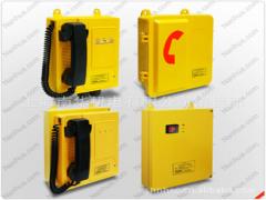 DT数字广播电话机数字电话机是我厂为在港口、电力、厂矿、设备等环境恶劣、干扰严重的场合下使用而最新研制开发的大型通信系统。本产品采用了先进的DSP高速数据处理技术和语音压缩编解码技术,解决了因电磁干扰、环境噪声和线路长短、位置不同引起的通话质量问题。本产品电源、通讯共用一根两芯非屏蔽线,采用无极性连接,24伏交直流集中供电、即接即用、免调试,无需专业人员,极大的缩减了线缆材料成本和人员安装成本。产品主要功能和特点:系统由一根两芯非屏蔽电缆连接,组网方便快捷;能够在恶劣环境下工作,适用多种应用场合;采用先进的抗干扰技术,具有超强的电磁兼容性和抗干扰能力;采用数字处理技术,以及利用无损数据压缩方式,对音质无损耗,音质清晰哄亮, 保持了音质原有特色,并支持三方、多方通话;广播优先级控制。(见使用方法的指示灯状态说明);-15Db环境噪声阈值,降低环境干扰;两分钟内无音频输入,自动切断音频电路,进入待机状态;支持点对点、级联式、分布式网络连接;自动功率调节,自动温度补偿电路,自动恢复、过载保护,自动静音;广播音量可根据现场环境和实际需要进行调整;系统工作电压DC24V,由系统电源集中供电, 系统电源供电采用AC110V±10%或AC220V±10%,系统电源配有专用的后备电源(DC24V蓄电池)接线端子,主电源和后备电源间可自动切换;任意一台电话机都可对整个区域进行广播呼叫,找人,通知方便快捷,一机多用;操作方便,LED显示当前工作状态;迷你型机箱设计,采用ABS材料,外形美观大方,坚固耐用,使用安全方便;室内机箱集话机和音箱于一体,外观新颖,结构合理,便于安装使用;室外机箱配备门锁,适合于恶劣环境下工作。技术指标:音频格式: 线性PCM音频输入阈值电压:-15db(电源电压0db),摘机两分钟内如音频输入一直低于此阈值电压, 自动切断音频输入,进入待机状态。载波格式: OFDM工作温度:-30℃ ~ +70℃工作湿度:10%~95%无冷凝系统工作电压: 直流24V±10%供电方式:集中供电,由系统电源提供;主电源 AC110V±10%或AC220V±10%。 备用电源DC24V,自备; 主电源和后备电源自动切换时间< 500ms任两部话机间通讯传输距离:800M系统组网数量:标准配置8部 MAX:20部(电源另行配置)运行方式:长时不间断机种及功能简介:1)室内机型号:DT001, 内置8Ω3W扬声器,方便20平方以内,环境噪声较小的房间广播,呼叫使用, 如果房间较大或者环境噪声很大,亦可外配8Ω10W号筒扬声器。对外广播、呼叫、通话都通过手柄实现,广播、呼叫时按住手柄上的按钮,广播、呼叫后,放开按钮,对方摘机后,便可直接进行通话。2)室外机型号:DT002,防水,无内置扬声器,外配8Ω10W号筒扬声器。对外广播、呼叫、通话都通过手柄实现,广播、呼叫时按住手柄上的按钮,广播、呼叫后,放开按钮,对方摘机后,便可直接进行通话。3)司机室话机型号:DT003,内置8Ω3W扬声器,满足对司机的呼叫需要,并外配8Ω25W号筒扬声器,对外部场所进行广播、呼叫;配有脚踏开关或钮子开关,用来控制鹅颈式话筒,方便司机广播、呼叫; 还留有两路音频输入接口,并有相应的控制接口,控制接口只需接脚踏开关或钮子开关,就可对相应的音频输入接口控制。亦可通过手柄实现对外广播、呼叫,广播、呼叫时按住手柄上的按钮,广播、呼叫后,放开按钮,对方摘机后,便可直接进行通话。4)电源:型号DT004,主电源输入交流110V或者220V,根据现场选择,最大输出直流24V,6.5A;并配有备用电源接口,可接24V蓄电池,或者其他直流24V,最大电流不应小于5A。当主电源停电时,自动切换到备用电源,当主电源恢复供电时,自动切换到主电源。如果使用备用电源供电,当备用电源为蓄电池时,会在电池放电到20V时停止对系统供电,保护蓄电池,只有在主电源恢复供电时恢复对系统供电,或者更换蓄电池后,按线路板上的RESET开关,恢复对系统供电。当系统由备用电源启动时,请按线路板上的RESET开关,开始对系统供电。后备电源由使用者自行配置,或委托厂家配置。应用范围:适用于独立组网的大型通信系统等场合(港口、码头、电力、化工、钢铁、石油、铁路机车)。 1)熄灭: 无话机广播