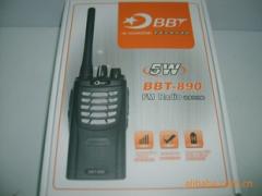 型号:BBT-890配置:一电一充 锂电1100MA频段:400-470MHZ电脑调频,中英文操作菜单,XP系统就可,数字和摸拟2种加密功能,可免处外界干扰,带语音报号。功率:5瓦通话距离开阔地3-6KM重:0.65KG(含电池,天线)长(含天线):24CM,不含天线:11CM宽:2.3CM适用范围:物业管理、酒店、建筑施工、工厂调度、铁路、交通、商场、林业、公安等行业保修说明:1、自购机7天内包退包换,不满意可理由全额退款 2、自购机180天内,如有质量问题包换新机 3、对讲机机身免费保修一年,对讲机配件保修半年