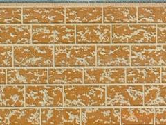 金属雕花板又名金属装饰保温板,由镀铝锌合金钢板、高耐候烤漆、硬质发泡聚氨酯和玻璃纤维布复合而成,表面通过金属压花和烤漆工艺,形成文化石、马赛克、大理石、红木纹等多种艺术装饰效果,三百多种颜色可供选择。 该产品主要应用各类建筑的节能型装饰和旧楼翻新,包括各类办公楼、别墅、宾馆、体育馆等,各种临时性建筑,如岗亭、商亭、集成别墅等 金属装饰保温板特点: 1、装饰隔热一体化: 该材料同时具备装饰与保温功能,外观上,通过对合金钢板压花和烤漆,可形成红木纹、文化石、大理石、马赛克等多种艺术装饰效果; 金属装饰保温板板复合聚氨酯保温隔热层,有效解决传统装饰材料功能单一的问题,外墙装饰与隔热同步进行;采用金属装饰保温板装修的房子,因其良好的隔热效果,在夏天,室内温度相对普通建筑要低3-5度,只需5-8年左右时间,建筑在空调制冷方面的节约的费用就可以收回材料成本; 2、成品化安装: 材料成品化,最大化的减少现场加工,安装更简易更快捷,可有效减少安装费用,加快施工进度、缩短工期; 有效消除作业环境和工人带来的不确定性,确保质量优异而且稳定;克服传统材料因辅料、工人操作、基层等原因引起的装饰质量问题:比如涂料开裂、瓷砖脱落等现象。 3、耐候耐久性: 金属装饰保温板面漆采用高耐候聚酯漆或氟碳漆,运用烤漆工艺覆涂在基层合金钢板上,面层形成致密的四元结晶层,有效避免普通涂层龟裂、脱落现象; 金属装饰保温板自洁性强,确保外观时刻靓丽,户外使用10-15年无褪色;基层钢板采用镀铝锌合金钢板,抗腐蚀性强,使用寿命可达45年以上。 4、广泛的适应性: 金属装饰保温板施工采用龙骨干挂,对基层的平整度及清洁程度要求低;板与板之间插接式安装,连接缝、阴阳角有相应配件扣接,基本免除用胶密封、勾缝,对作业温湿度要求低;对砖混、框架、剪力墙、钢结构等各类建筑结构具有极强的适应性 5、环保性能优越: 金属装饰保温板成品化的材料、干挂施工,大大减少现场施工的辅材使用(如砂浆等),有效避免施工现场扬尘现象,材料堆放整体有序,确保洁净的施工环境
