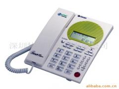 1. 多组固化单键,方便快捷的“一键通”功能2. 智能双制式FSK/DTMF来电显示功能3. 本地码设置功能4. 出局码设置功能5. 存储容量庞大6. 来电/去电信息翻查、删除、回拨功能设计7. 日期及时间显示功能8. 超强防雷设计功能设置在挂机状态下“设置”键启动主菜单,LCD显示“SET 1 DATE”,设置过程中按“上翻、下翻”键可修改参数,修改完后按“设置”键确认可进入下一项设置。设置过程中按“删除”键(或十秒内没有按键操作、取线或收CALL)可退出设置。1、时间设置在挂机状态下按“设置”键,LCD显示“SET 1 DATE”,按设置键确认,LCD上显示的年闪烁,此时可按“上翻、下翻”键可将当前闪烁位修改,完成后按“设置”键确认,然后按同样的方法设置月、日、时、分,完成后按“设置”键确认。2、区码设置在时间设置完成后按“设置”键,LCD显示“SET 2CODE”,此时按“设置”键确认,可进入区码设置,LCD显示“0-----”,并在第一位闪烁,此时按“上翻、下翻”键可将当前闪烁位修改为“0~9或-”,按“设置”键确认并移向下一位,设完后按“设置”键可完成区码的设置并进入下一项设置。来电号码大于或等于9位并且前面几位与所设区码完全一致,则在回拨时将自动去掉这几位号码。例如:0755(长途码+区码)应设置为:“0755—”。3、出局码设置在区码设置完成后按“设置”键,LCD显示“SET 3 PCODE”,此时按“设置”键确认,LCD显示“—”并闪烁,此时按“上翻、下翻”键可将当前闪烁位修改为“0~9*#或—”(“—”表示无出局码),按“设置”键可完成出局码的设置并进入下一项设置。来电号码大于或等于6位时,回拨时将自动在号码前面加出局码并暂停一秒。4、LCD亮度设置在设置完出局码后按“设置”键,LCD显示“SET 4LCD”,按“设置”键屏幕显示“LCD3”,(上电默认为第3级,共8级),按“上翻、下翻”键可修改。按任意键退出可保存修改值。设完后按“设置”键确认并进入下一项设置。5、闪断时间设置在设置完LCD高度后按“设置”键,LCD显示“SET 5 FLASH”,按“设置”键确认,LCD显示“FLASH600”,表示闪断时间为600ms,此时可按“上翻、下翻”键选择FLASH时间,FLASH时间有1000 ms、600 ms、300 ms、110 ms可选,选定后按“设置”键确认并返回第一层设置菜单。6、防盗设置在设置完闪断后按“设置”键。LCD显示“SET 6 STEAL“,按“设置”键确认,LCD显示“OFF”,表示防盗为关,此时可按“上翻、下翻”键选择OFF或ON,选定后按“设置”键确认并返回第一层设置菜单。7、防盗打功能当防盗功能打开时,如有非法并机使用时,本机会不停地启动免提发出干扰信号干扰盗打电话机拨号。当非法使用消除时,本机发出的干扰信号自动消除。8、去电号码及通话时间记忆、查询功能本机提供20组18位去电号码及通话时间记忆、查询功能。在挂机或取机状态下按“去电查询”键,按“上翻或下翻“键,查询去电号码及通话时间,查到去电号码后,按”重拨“键可将该去电号码拨出;在挂机状态下,也可按一次”删除“键将该去电号码删除或按住“删除”键2秒将所有去电号码删除。摘机状态下则不能删除。9、来电显示功能1、来电信息的查询:按“来电查询”键,再按“上翻、下翻”键,可向后或向前循环查询来电号码;若有未查询的新来电,LCD的“新来电”标志会一直点亮。2、来电信息的删除:查到要删除的号码后,按“删除”键一次则删除该组号码;按住“删除”键2秒则删除所有接收到的来电信息。3、来电的回拨:查询到要回拨的号码,按一下“重拨”键可将来电号码拨出,如按住“重拨”键2秒,会在来电号码前加“0”后再拨出。10、和弦铃声和普通铃声的设置在挂机状态下,按住“闪断/退出”键3秒,LCD显示“RING11”,连续按“闪断/退出”键选择自己喜欢的和弦声后,按“删除”键退出。注:初上电时为普通铃声,选择和弦后才响和弦铃声。11、一键通操作说明1、17909:按此键,话机直接拨出“17909”号码。2、新电话生活:按此键,话机直接拨出“118333”号码,即接通新电话生活服务平台。3、天气预报:按此键,话机直接拨出:“96121”号码,即接通天气预报服务平台。4、电信服务:按此键,机直接拨出:“10000”号码,即接通电信服务平台。5、紧急服务:按此键,话机直接拨出:“------”号码,即接通紧急服务平台。6、号码百事通:按此键,话机直接拨出:“------”号码,即接通号码百事通服务平台。7、社区服务:按此键,话机直接拨出:“------”号码,即接通社区服务平台。8、根据话机一键通不同按键名称,选择拨打相应的服务平台。在摘机或挂机状态下,直接按该键即可。 |