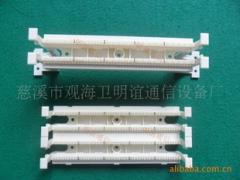 ◆主要技术参数*产品材质:采用钢板及PC注塑而成*IDC:磷青铜,镀银(20~50uiLZh),适用线径为0.4~0.6mm,寿命不小于200次。*阻燃性:采用PPO+PC注塑而成,满足国际标准*接触电阻:正常大气压条件下不大于2.5mΩ(不含体电阻)*绝缘电阻:正常大气压条件下不小于1000MΩ*抗电强度:DC 1000V(AC、700V)1分钟内无击穿和飞弧现象*标准:依据国际标准ISO/IEC11801;TIA/EIA568设计制造◆应用范围*110配线架起着传输信号的灵活转接、灵活分配以及综合统一管理的作用 |