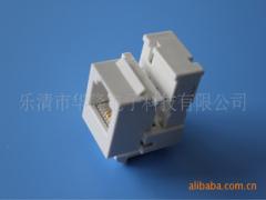 8线式六类插座模块,全金属化簧片结构,模块化设计,用于线缆的快速接续和成端。1、IDC:磷青铜,镀银(20~50uinch),适用线径为0.4~0.6mm,卡接寿命不小于200次;2、8线插针:磷青铜,镀金(20~50uinch),插头插座可重复插拔不小于750;3、阻燃性:塑料件采用PPO+PC注塑而成,满足国际标准;4、接触电阻:正常大气压条件下不大于2.5mΩ(不含体电阻);5、绝缘电阻:正常大气压条件下不小于1000MΩ;6、抗电强度:DC 1000V(AC、700V)1分钟内无击穿和飞弧现象;7、标识:完善、清晰的标识管理系统;8、标准:依据国际标准ISO/IEC11801;TIA/EIA568设计制造。